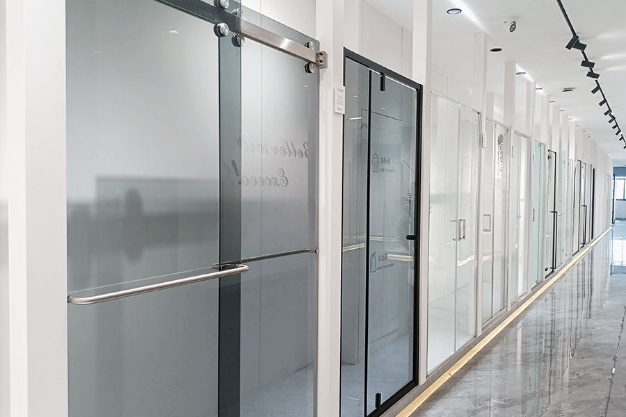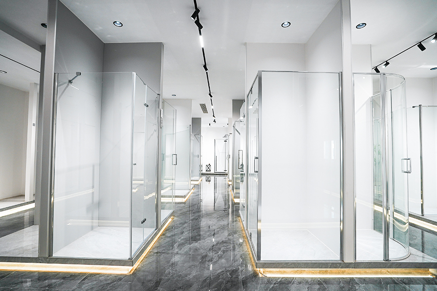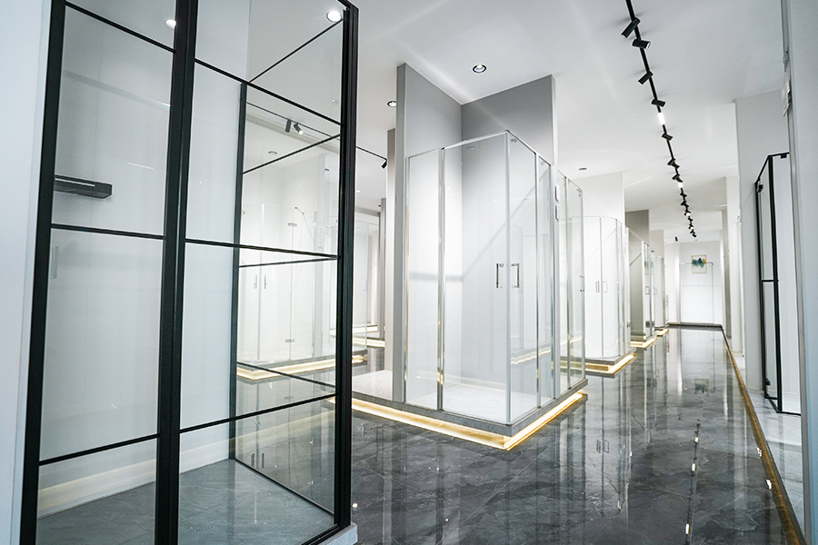 In unserem Showroom können Sie die Detailqualität und den reibungslosen Türbetrieb erleben und solide Haptik von EXCEED Duschabtrennungen.